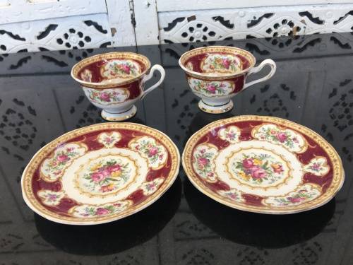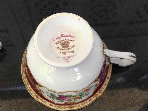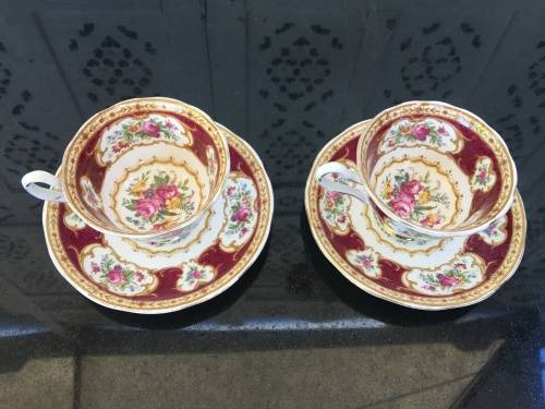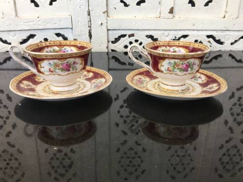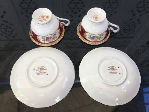 Delightful Lady Hamilton c1939-1945 Date Stamp Royal Albert Crown China England, 2 x Small Tea Cups & Saucers