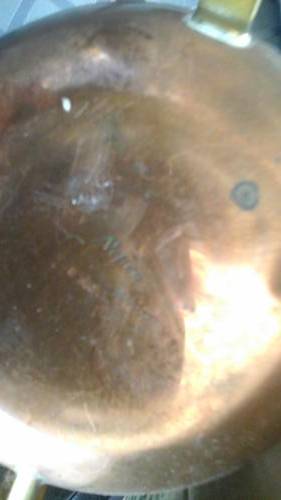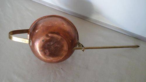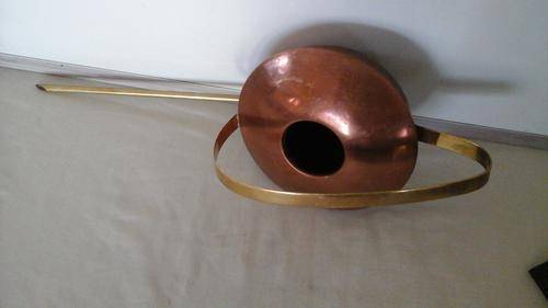 DELIGHTFUL ROUND NEPCO COPPERWARE BRASS HANDLE AND SPOUT COPPER WATERING CAN. 400 MM FROM END OF SPOUT TO END OF HANDLE. STANDS 150MM HIGH