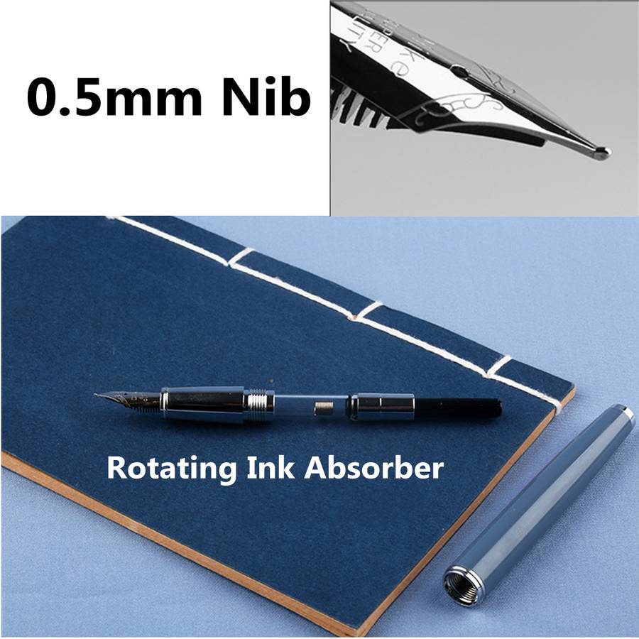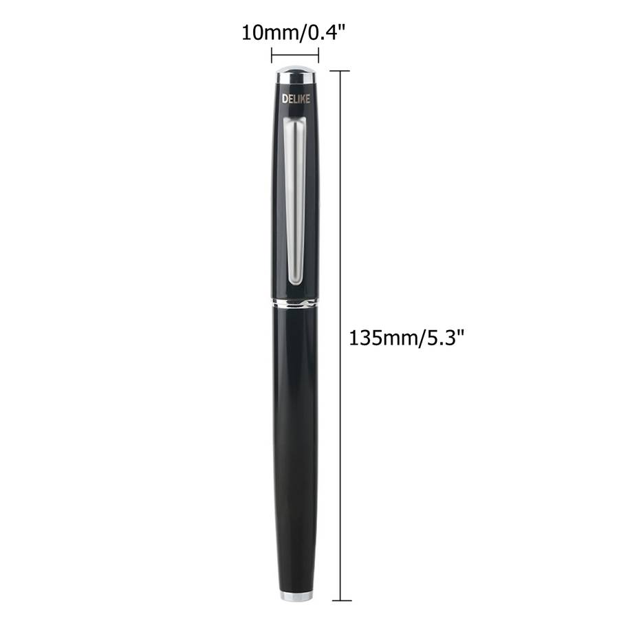 Specifications: Brand: DELIKE Nib: 0.5mm Material: Metal Length(Approx): 135mm/5.3 Diamerter(grip): 10mm/0.4 Weight: 33g(Just the pen) Color: White, Green, Pink, Blue, Black Features:Paint Metal,beautiful colors,Smooth nib,great for writing Application:Office/Business/Writing/Students/Calligraphy/School stationery/Gift