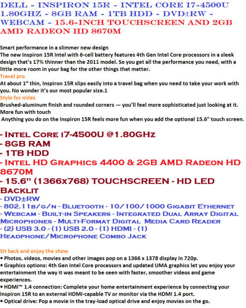 EXCELLENT CONDITION DELL INSPIRON 15R