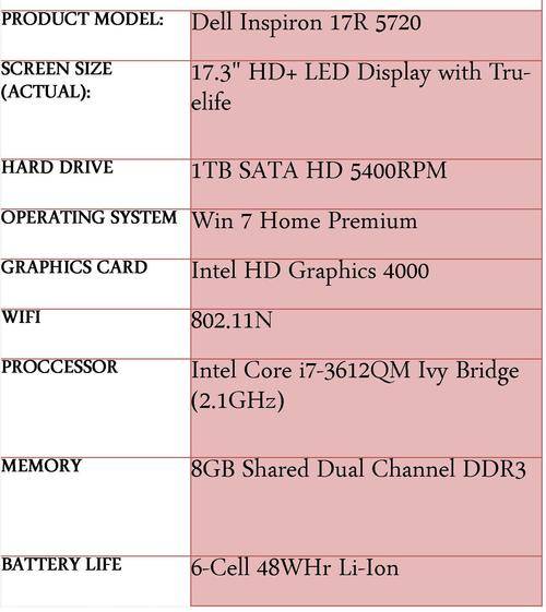 Dell Inspiron 17R 5720 Ivy Bridge i7 NEW - Walala Wasala!!!!