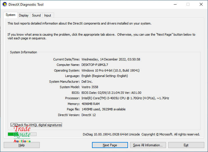 Dell INSPIRON 3558 15.6" LAPTOP Intel Core i3 4005U 1.7GHz 5th GEN 4GB RAM 500GB HDD - Low Battery - Works for around 30 mins