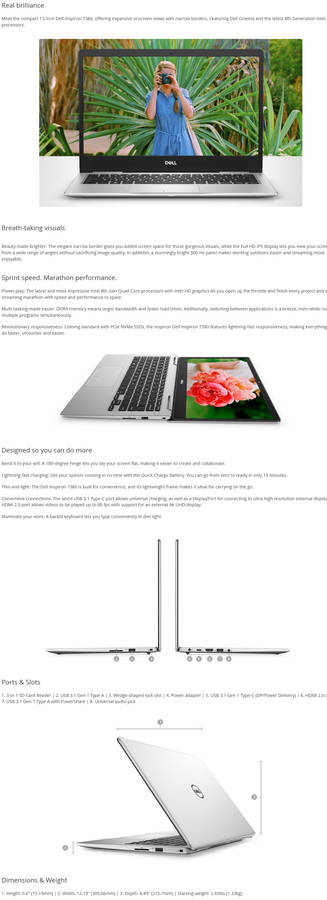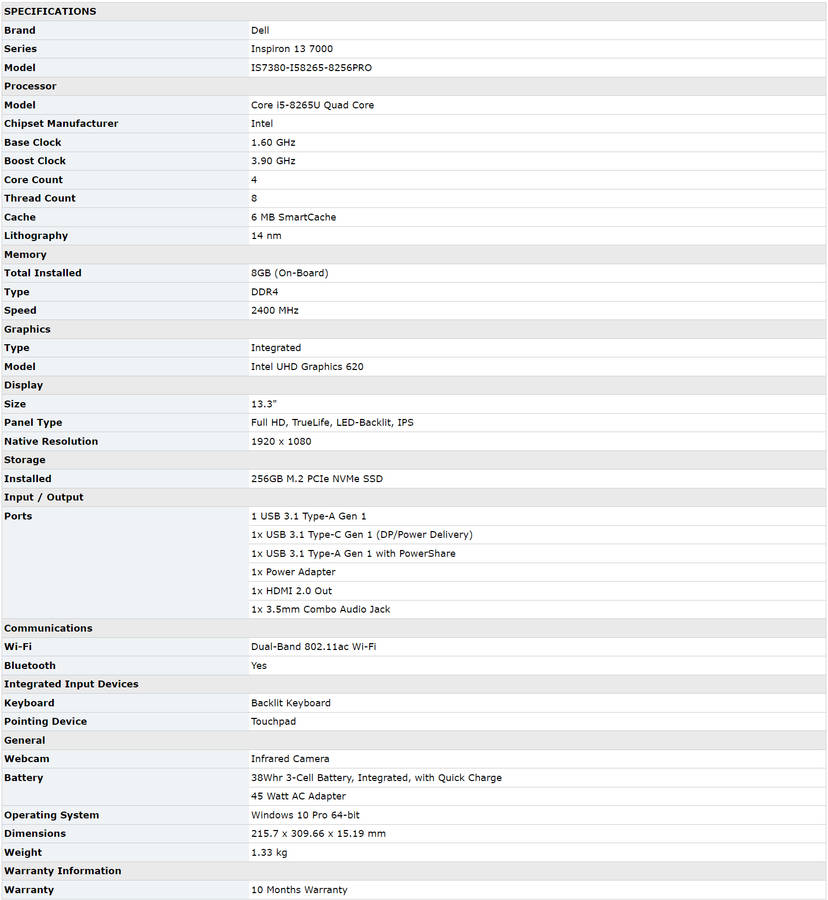 Dell Inspiron 7380 (Inspiron 13 7300) i5 Laptop | Intel Core i5-8265U | 8GB RAM | 256GB NVMe Ultra Fast SSD | [BRAND NEW SEALED]