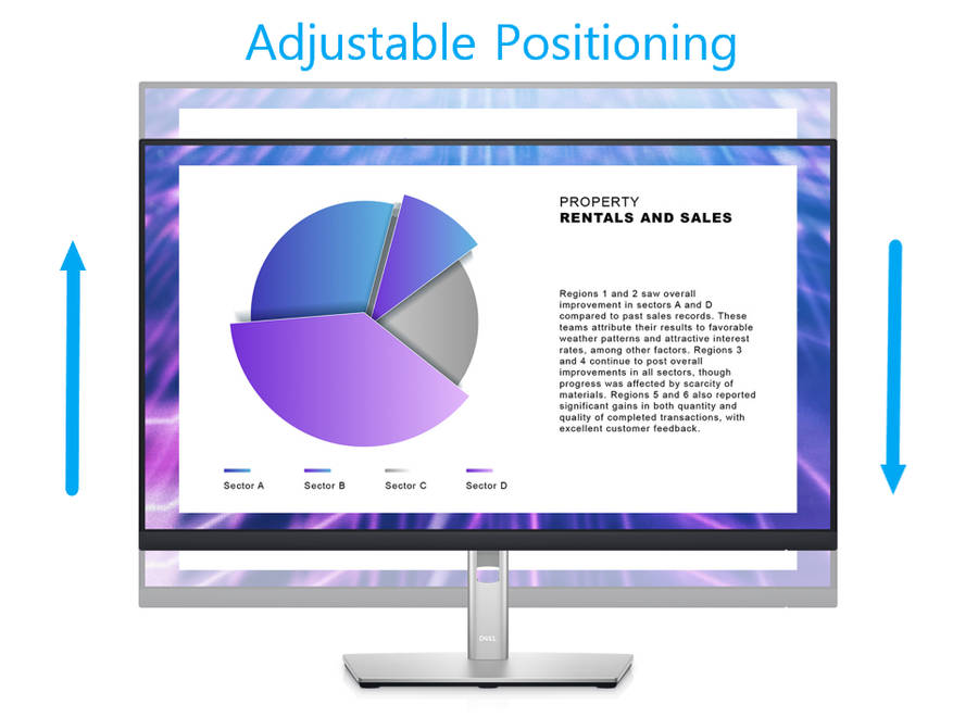 Comfort is key: Tilt, swivel, pivot and adjust the height of your monitor (150mm height adjustment range) for extra comfort during work. Designed with you in mind: Snap on the Dell Slim Soundbar (SB521A) and elevate your listening experience.