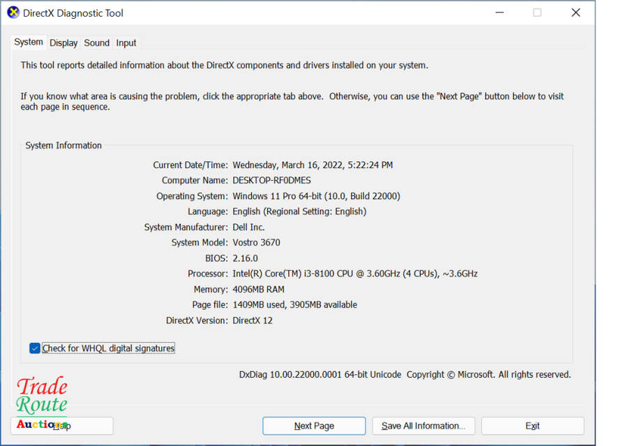 Dell Vostro 3670 Tower Desktop PC