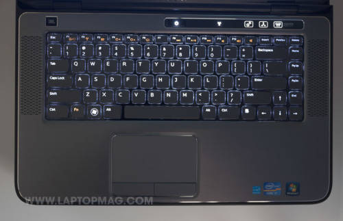 Above the keyboard sit a few status lights and three touch-sensitive buttons. The first button launches Windows Mobility Center, a mini control panel that allows you to easily manage your Wi-Fi, Bluetooth, and display settings; we particularly appreciated being able to set the keyboard backlight's brightness. The second button is user-configurable, and the third button launches Dell Audio by Realtek, an audio control center.