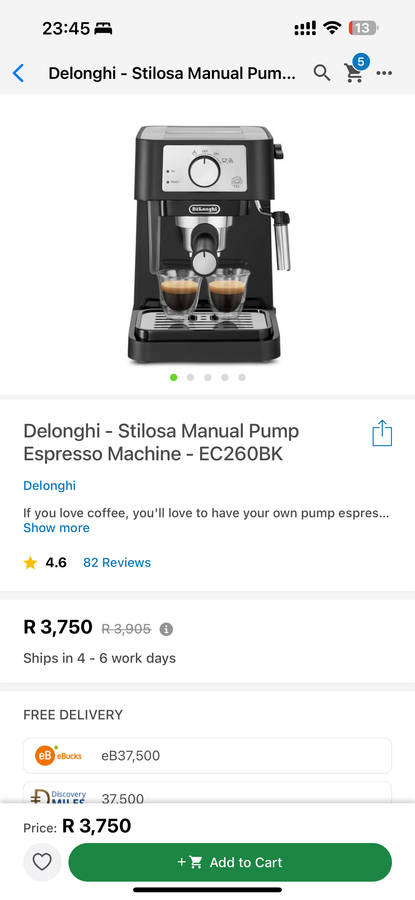 The Stilosa Espresso Machine by De'Longhi is an elegantly designed espresso machine that elevates your espresso experience at home.