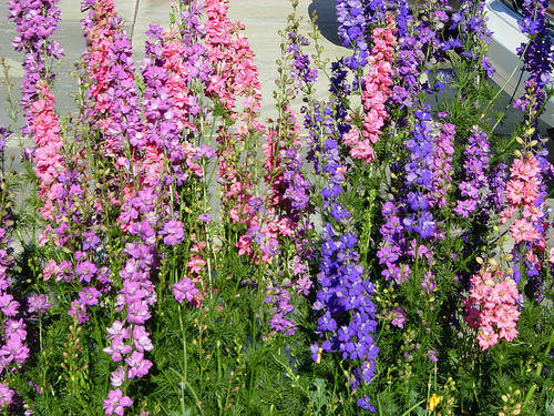 Rocket Larkspur [ Delphinium Ajacis ] prefers full sun to partial shade in very well-drained soils. This plant develops quickly, shooting up like a rocket, hence the common name. It is a marvelous plant to accent any cut flower arrangement. The plant is likely to rot at the base in soils that retain excessive moisture, and it can re-grow following spring if seed falls on bare ground. Annual larkspurs are best suited for flower beds and borders where they may self sow year after year.