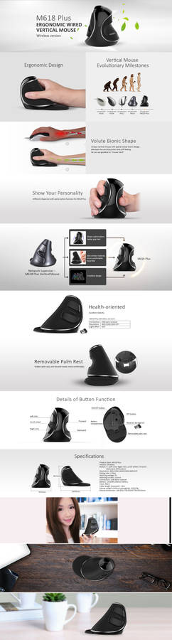 | Product | Delux M618 Plus Wireless Vertical Mouse 800/1200/1600 DPI 6 Function Buttons Ergonomic Optical Mice with Removable Palm Rest |