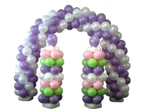 Do-it-yourself Deluxe Latex Balloon Arch and Column Kit. Just add balloons to the hardware to create two 6.5 ft columns AND one 12 x 11.5 ft arch. Includes 4 bases; 4 two-piece extension poles; 1 arch white arch cord; 1 electric latex balloon inflator; and 60 plastic balloon rings. Also included in this kit; exclusive to Amazon; are two Column Topper Caps. They make attaching the top balloon to your column a snap!