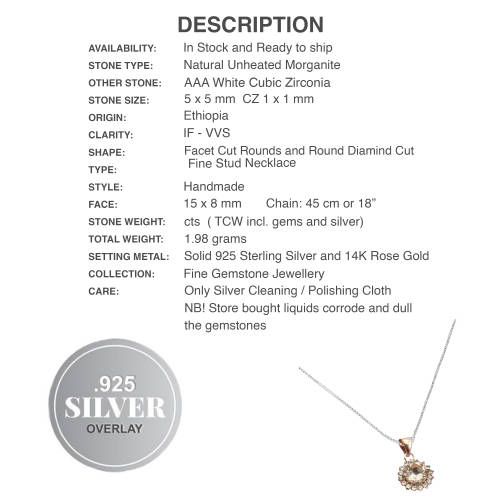 Delight in the delicate beauty of this gorgeous Sterling Silver Necklace, featuring a stunning Morganite and white Cubic Zirconia combination. Its dainty elegance adds the perfect touch of sophistication to any outfit, guaranteed not to disappoint!