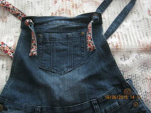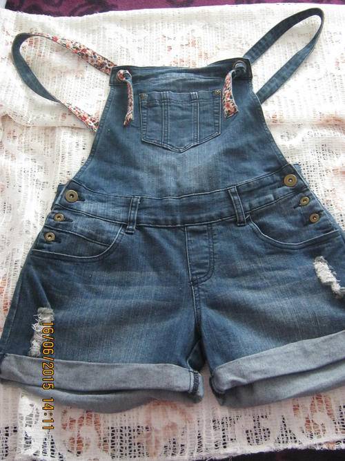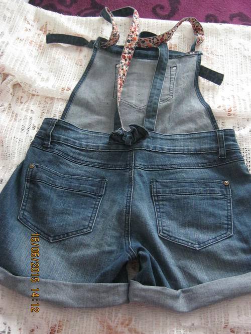 This dark denim romper was only worn a few times, there are no signs of wear-and-tear, the item is in a good condition! The straps can also be adjusted as needed or be twisted around to show the beautiful floral printed side on the outside.