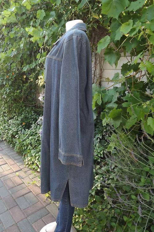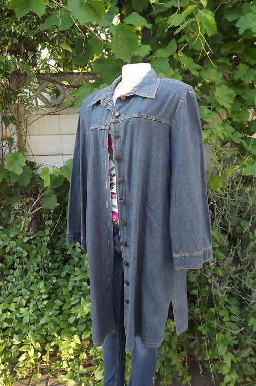 Denim Mia-Tiana long jacket.Button down front.Size 44/20.Yoked front.Slitted sides.Shirt type collar
