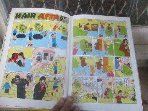 HARDCOVER;19.5 X 28 CM;PUBLISHED IN 1993;ABOUT 100 PAGES WITH COLOUR ILLUSTRATIONS;BOOK IN A GOOD CONDITION AND INTERNALLY CLEAN;TAGS;DENNIS THE MENACE;PLEASE NOTE IF YOU PURCHASE 10 BOOKS AND/OR MAGAZINES,THE SHIPPING CHARGES WILL BE AN EXTRA R99,I WILL SEND THE ITEMS VIA POSTNET,2-3 DAYS,OR IF YOU PREFER OR IF YOU DO NOT HAVE A POSTNET IN YOUR AREA AND HAVE A PEP STORE I CAN SEND THE ITEMS VIA PEP STORE'S PAXI SERVICE,7-9 WORKING DAYS,SHIPPING CHARGES R50.