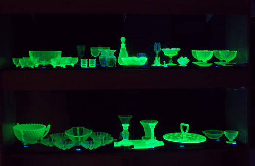 Uranium glass was once made into tableware and house hold items but fell out of widespread use when the avalability of uranium to most industries was sharply curtailed during the cold war.