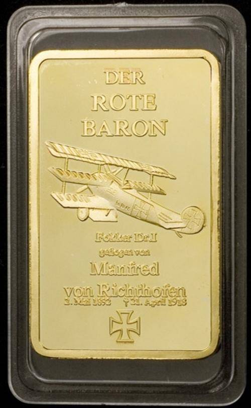 1oz .999 Pure Gold Layered "RED BARON" Bullion Bar