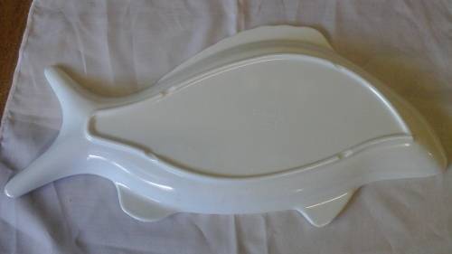 THESE GORGEOUS PIECES ARE SHAPED INTO FISH, MADE FROM MELAMINE AND WHITE IN COLOR.