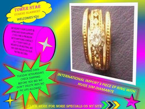 DESIGNER GOLD ELECTROPLATED 3 PIECE RING WITH STUNNING CZ GEMS SIZE 8