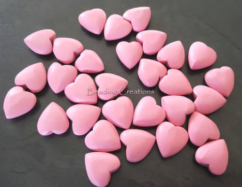 DESIGNER - HAND PAINTED - NATURAL WOODEN HEART BEADS - ROSE PINK - 20x22mm