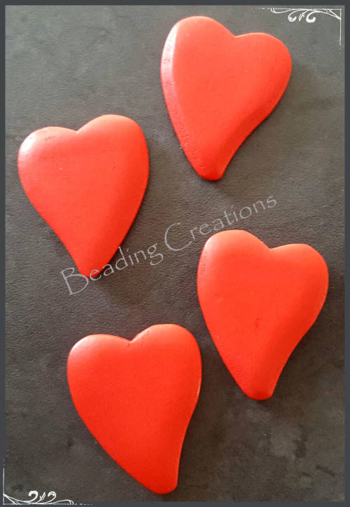 DESIGNER - HAND PAINTED - NATURAL WOODEN HEART BEADS WITH EYEPINS - MEDIUM RED - 37x32mm