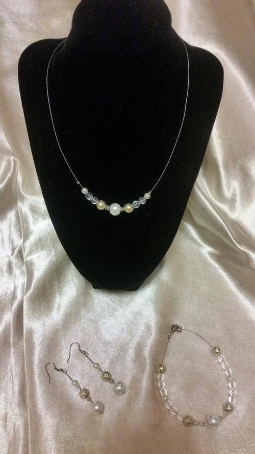 Designer handmade Ela Stella white and gold pearls jewellery set ********worth R299!!