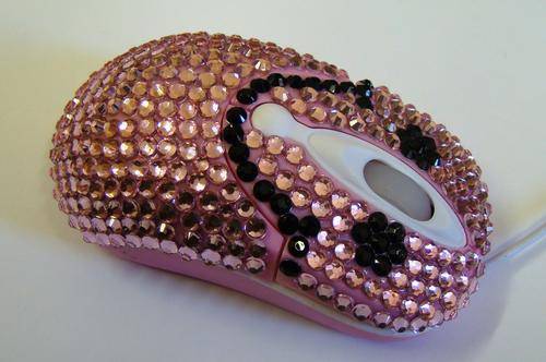 DESIGNER PINK AND BLACK BLING OPTICAL MOUSE WITH RHINESTONES