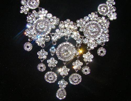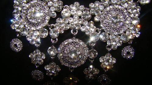 Beautiful silver necklace with matching earrings... Embedded with simulated diamonds giving it a stunning lustre and guaranteed to make you sparkle.
