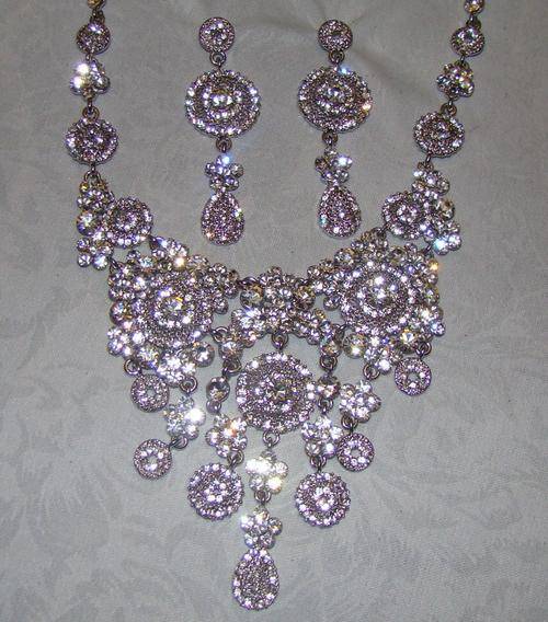 DESIGNER SILVER NECKLACE WITH SIMULATED DIAMONDS AND MATCHING EARRINGS