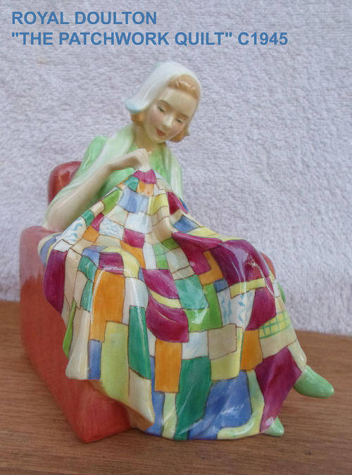 Offered to the Serious Royal Doulton Figure Collectors, is one of the most sought after of Famous Designer Leslie Harradine's works. In immaculate condition, no chips, cracks, crazing, hairline cracks or repairs, here we have the colourful and beautifully painted figure entitled "the patchwork Quilt" Designed in 1945 discontinued 1959. Rather Scarce in this Amazingly good condition. Painted by Artist Margarate Timmis.