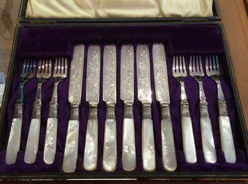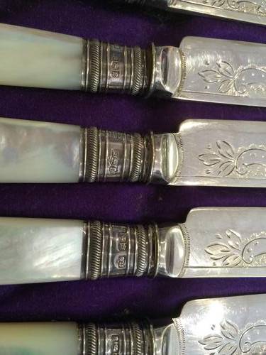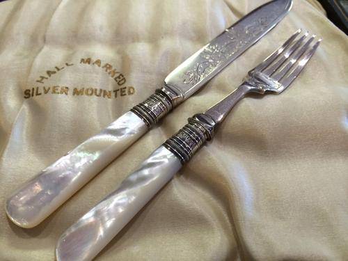 Dessert/Fruit cutlery set - sterling silver mounted collar