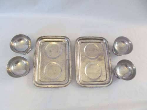 CONDITION : BESIDES THE TWO TRAYS REQUIRING A POLISHING, ALL ITEMS ARE IN PERFECT CONDITION WITH NO DENTS, RUST OR DAMAGES ETC
