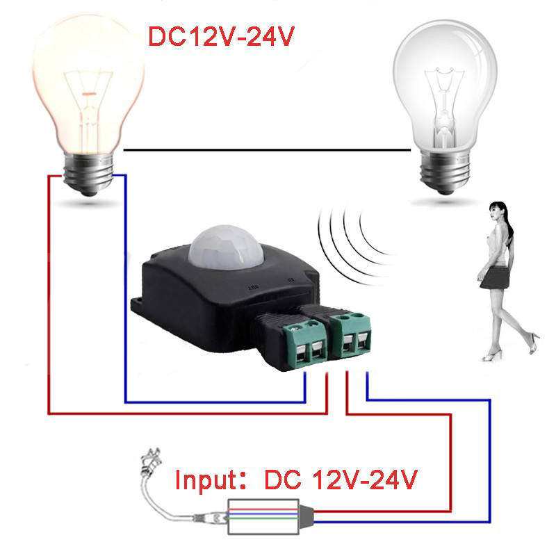 Influence control: Light Infrared PIR Sensor sensitivity distance: a7m Sensor sensitivity angle: 145ᆪ Load current : 10A Working voltage:5-30V Delay time: If people leave, light will delay 30s-150s(Adjustable) to turn off Certificate: CE Package Includes :
