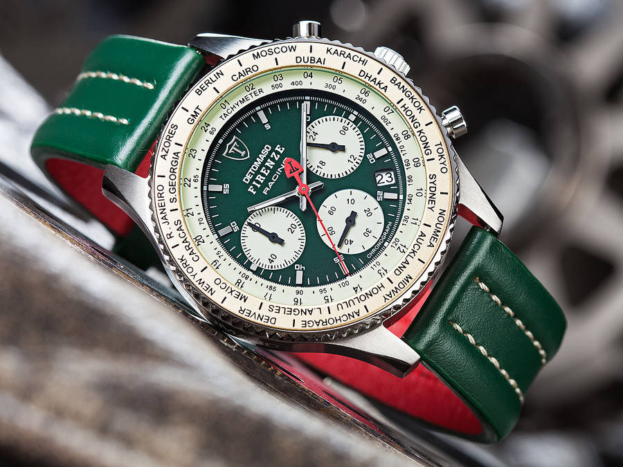 With its exceptional design, the detomaso Firenze chronograph for men meets the highest of demands in design. The chronograph is made from high-quality stainless steel. The rotatable bezel displays the indices for various time zones. Inimitable elegant features highlight the Firenze's distinctive, masculine tone. This dynamic design enhances a business suit as well as casual wear, with a great sense of style. Enjoy the elegant, sporty and stylish design of the top seller in detomaso's classic collection, fitting for any occasion.