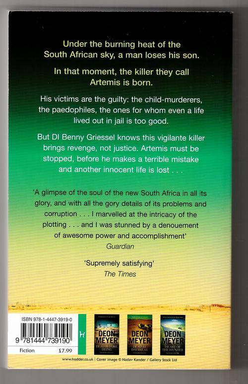 Soldiers never find it easy returning from war. So it is with Thobela Mpayipheli, former freedom fighter, trying to settle back into the new South Africa. But at least he has his boy, an adored companion who is a link to a happier past. Then the boy is taken from Thobela, one of a staggering number of children murdered or abused in South Africa, and Thobela knows only despair...and a cold desire for revenge. Thus is born the vigilante killer known as 'Artemis'. The police respond by putting on the case a man who can't afford to fail. Benny Griessel is on the brink of losing everything - his job, his family, his self-respect - and this could be his last chance to drag his life back out of the gutter. And then Benny meets Christine, a young mother working as a sex worker in Cape Town. And something happens that is so frightening, the world can never be the same again, for Benny, for Christine, or for Thobela.