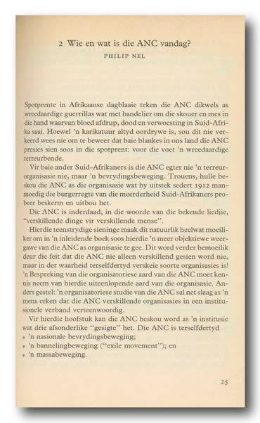 Die ANC deur Willie Esterhuyse & Philip Nel (1e 1990). A5, sagteband, 151bls. Buiteblad effens verweer. Boek binne in goeie leesbare toestand. Sommige bladsye en highlights op.