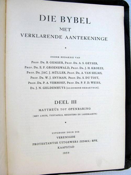 DIE BYBEL : MET VERKLARENDE AANTEKENINGE : DEEL III : MATTHEUS TOT OPENBARING : 1959