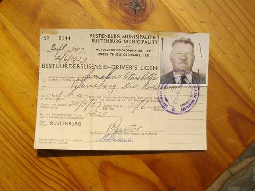 THERE ARE A COUPLE OF PHOTOSTATS OF ARTICLES, A TYPED OUT PAGE OF ADDITIONAL INFO, A BAPTISM CERTIFICATE CORNELIUS PETRUS POTGIETER BORN 1889 AND DATED 2/6/38 AS WELL AS HIS DRIVER'S LICENCE ISSUED BY RUSTENBURG MUNICIPALITY DATED 20/5/57 INCLUDED