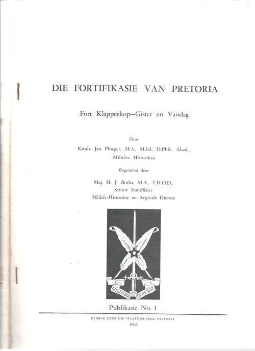Fort Klapperkop Gister en Vandag.... An amazing find; Publikasie No. 1 written by Cmdt Jan Ploeger. A4 softcover edition published in 1968. 95 pages. Illustrated throughout. Scarce book! Registered posatge is R40.00.