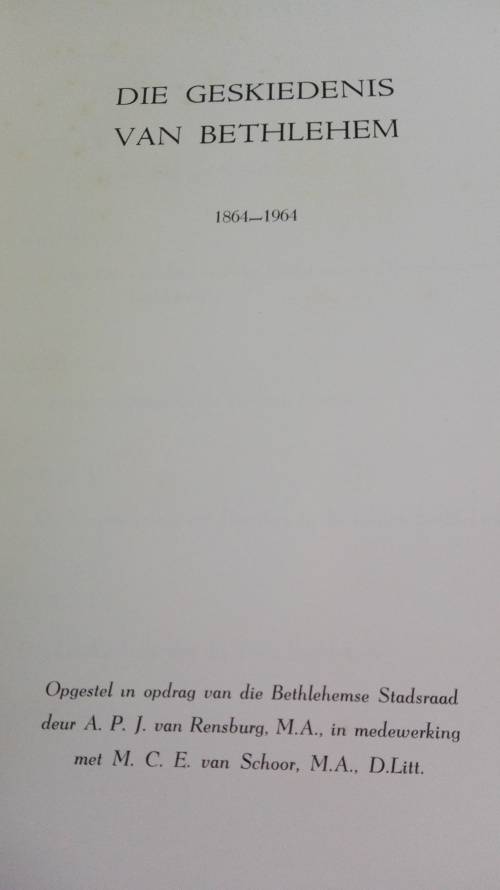 Die Geskiedenis van Bethlehem 1864 - 1964.A P J van Rensburg M A in medewerking met M C E van Schoor M A D. Lt. 1963 ; Hardcover
