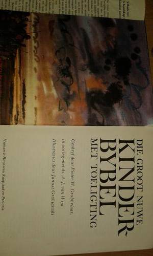 Kinder Bybel with colourful illustrations!!Not something you see everyday anymore.Dustcover a bit torn,but inside of Bible in good condition and no torn pages.See photos..!!