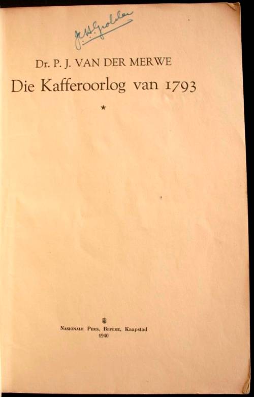 Boek het behoort aan Akademikus dr. J.C.H. Gobler en bevat baie van sy penonderstrepinge en so paar aantekeninge in die teks.