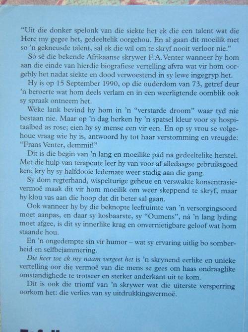 tweede druk 1997 sagteband 147 bladsye, die sagteband het een of twee klein merkies en die hoekie voor onder kom effens gevou voor, naam stempel voor in boek, bladsye is liggies vergeel, die teks is skoon en die binding goed- geen oorsese versending