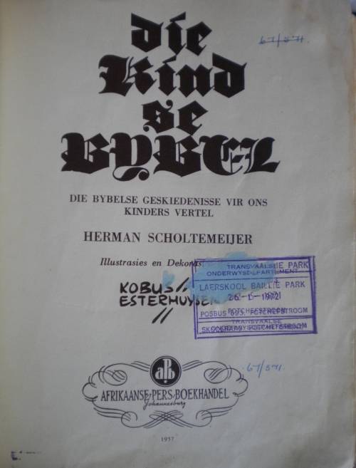Die kind se Bybel 1957. Boek is in n swak kondisie met penmerke, stempels en vlekkies.Een van die bladsye is 'n kwart afgeskeur.Dit lyk ook of daar n bladsy of twee weg is. Maak asb seker dat jy tevrede is voor jy 'n bod insit.