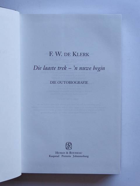 Die Laaste Trek, 'n Nuwe Begin, Die Outobiografie - F.W. de Klerk