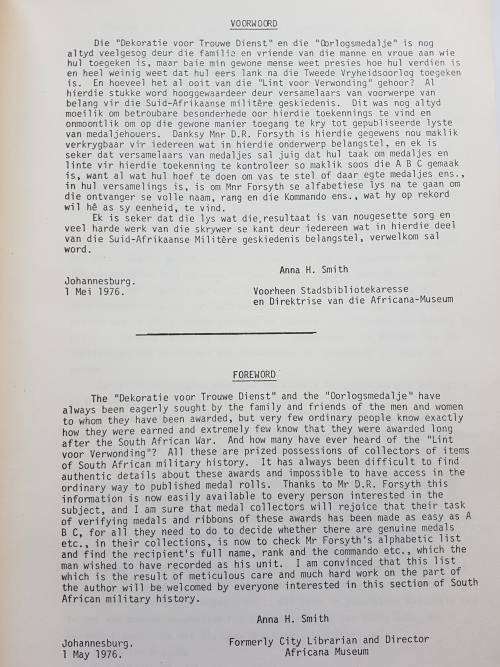 Hardcover in worn and sunned orange cloth with black titling. Author signed dedication to previous owner dated 1.9.77 on inside front board. 172 pages of lists printed on facing page only, and photocopies of supporting official documents.