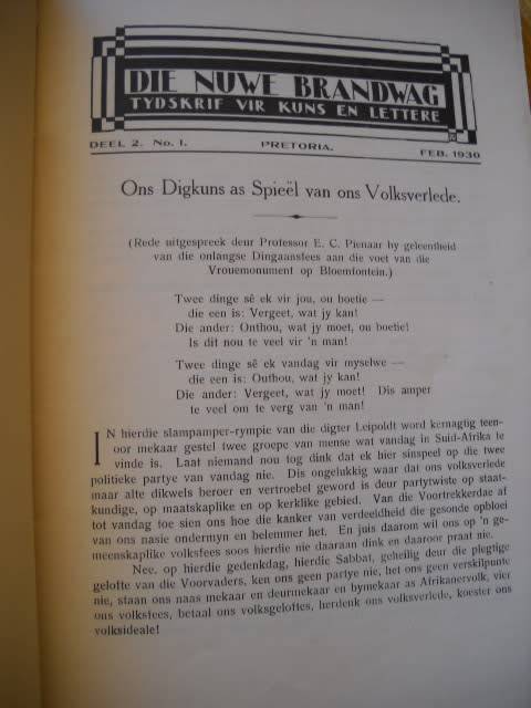 DIE NUWE BRANDWAG - Tydskrif vir Kuns en Lettere Deel II Nr. 1 deur J. H. de Bussy Feb. 1930