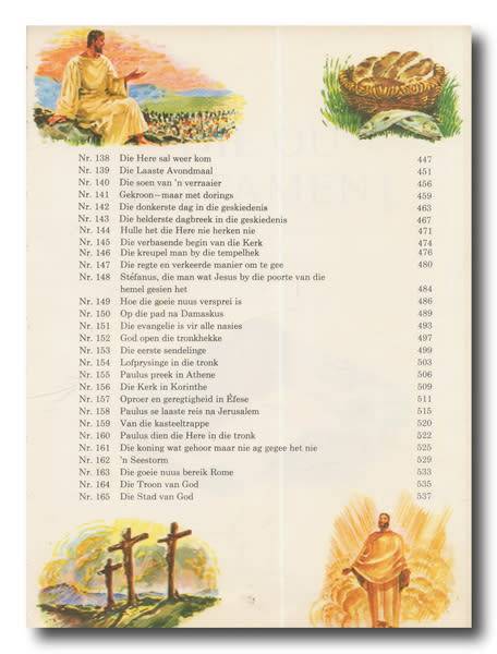 Die Nuwe Kinder-Bybel in kleur - Teks deur Paul von Staden - Illustrssies Carlo Tora (6e druk 1978). A4, hardeband met stofomslag, 541 bls. Stofomslag effens verweer veral bo aan rugkant. Boek binne in goeie toestand. Klein inskripsie voor in boek.