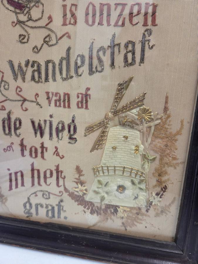 Vintage Embroidered art - Framed - De Hoop is onzen wandelstaf - Size - 47cm x 38cm