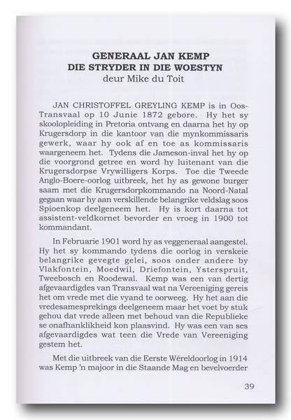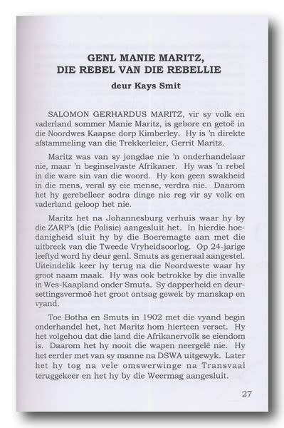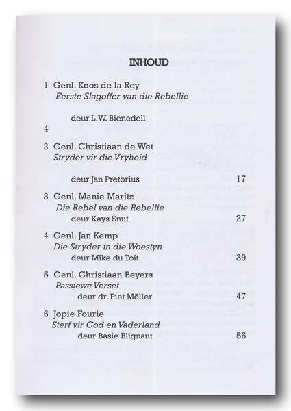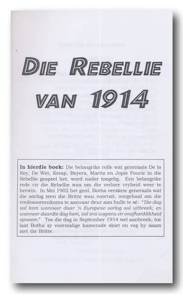 NUUT. Die Rebellie van 1914 (5 skrywers) In hierdie boek word die ses hoof figure van die 1914-15 rebellie behandel, naamlik Generaals De Wet, De la Rey, Beyers, Kemp, Maritz en Kommandant Jopie Fourie. Siener van Rensburg speel ook ‘n belangrikke rol. In 1996 gepubliseer.