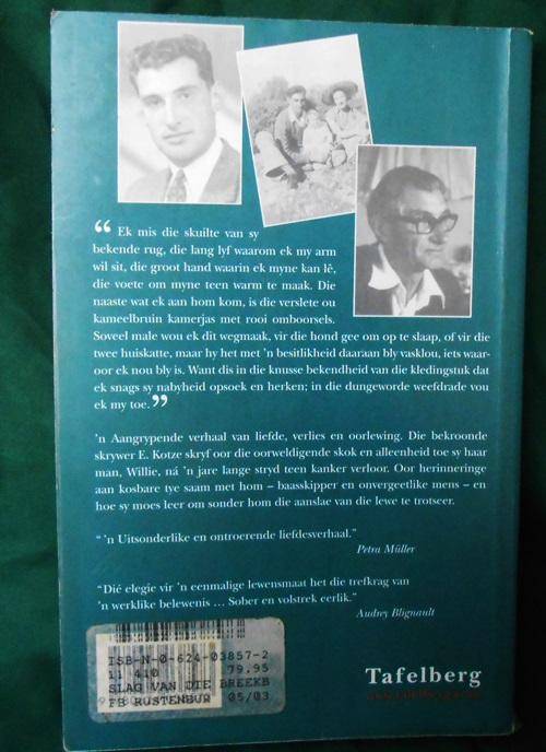 "n Aangrypende verhaal van liefde, verlies en oorlewing. Die bekroonde skryfster E Kotze skryf oor die oorweldigende skok en alleenheid toe sy haar lewensmaat verloor het.Posgeld R36